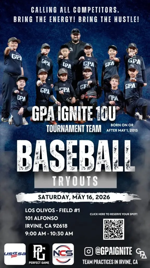 GPA 10U TOURNAMENT TEAM TRYOUTS MAY 16 April 17, 2026 hotrosters TRYOUTS Comments Off on GPA 10U TOURNAMENT TEAM TRYOUTS MAY 16 10UGPAIRVINEORANGE COUNTYTRYOUTTRYOUTS